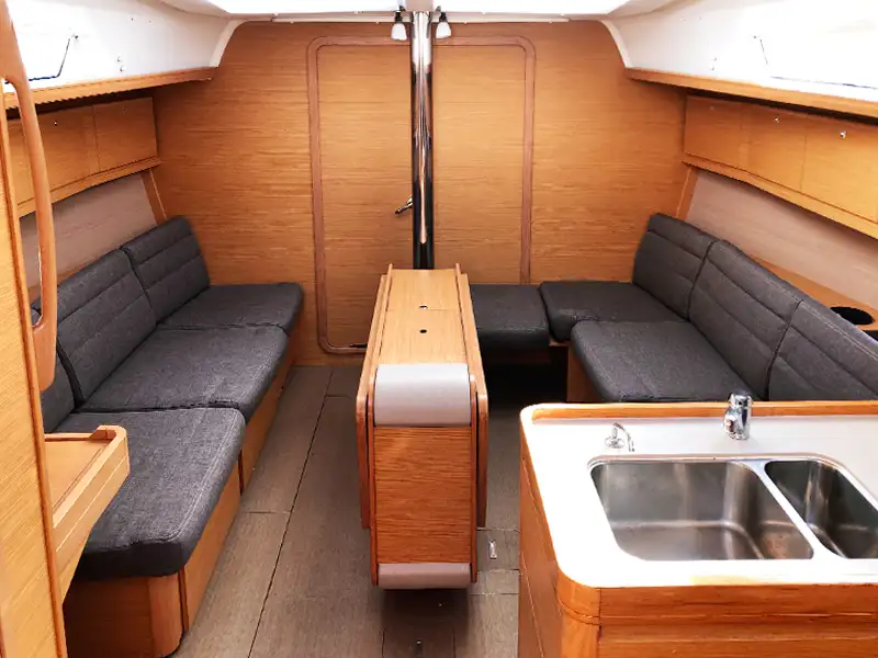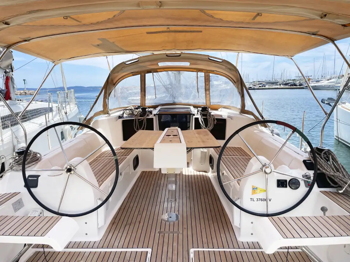 Le DUFOUR 382 "Tara" est performant, tout en offrant un contrôle et une facilité de manœuvre optimisés. Au mouillage, le pont dégagé facilite les déplacements à bord et sa plage arrière avec son échelle intégrée permettent un accès à l’eau en toute simplicité.